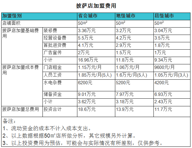 開家披薩店投資大概要多少錢?縣級城市成本只要11萬