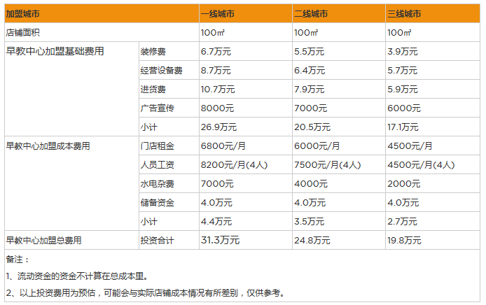 此外還有一些其它的營銷費用和日常開支,不過這些費用相對較小,想要開家不錯的早教中心,手中最好有30-80萬的資金。由于它的投資成本較高,所以成本回收較慢,一般要等到兩年左右才能實現(xiàn)盈虧平衡。
