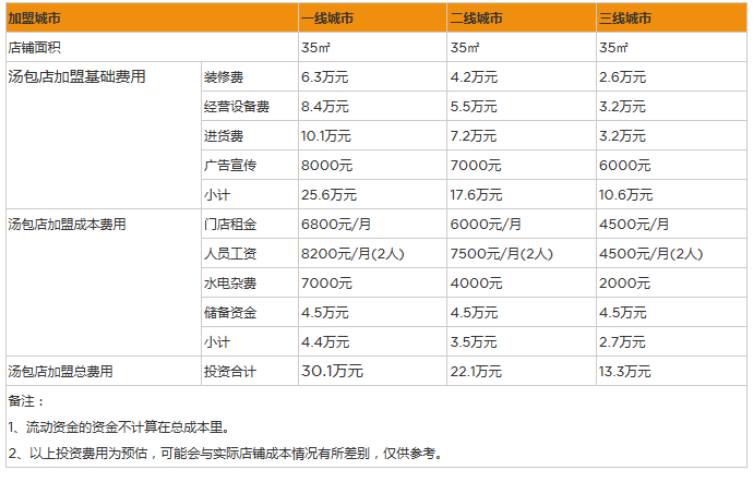 開家湯包店投資大概多少錢?35㎡成本預算花費12萬元