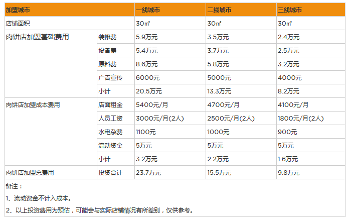 每項投資的投資費用,都是投資者們所關注的。因為投資的總費用會讓投資者有一個直面的預估,自己的資金是否能投資。所以很多投資者都很關注一個加盟店的投資的所有費用。以下就是每位投資者最關注的在一個地級市開一家肉餅得投資多少錢的費用簡單說明。