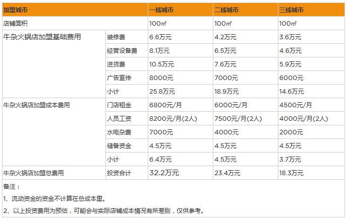 1、目前市場上牛雜火鍋店品牌的特許權(quán)使用費在三五萬元不等,考慮全面的技術(shù)培訓(xùn),運營服務(wù),低成本的需要,但沒有加盟支持是不同缺少的。