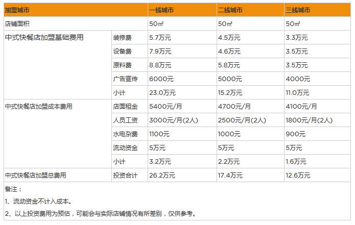開家中式快餐店投資一般需要多少錢?50㎡投資12萬,詳情數據分析