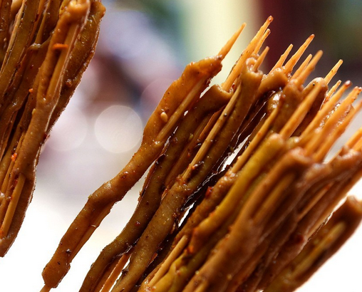 香辣的烤鴨腸,萬里飄香,每天都能吸引一大堆吃貨前來品嘗,店面口擠滿了人。