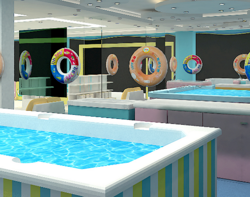 嬰兒游泳館裝修設計可根據經營區域及投資者實際狀況,自行選擇裝修檔次,從350元/㎡(精致)到600元/ ㎡(高檔),約15000-40000元。