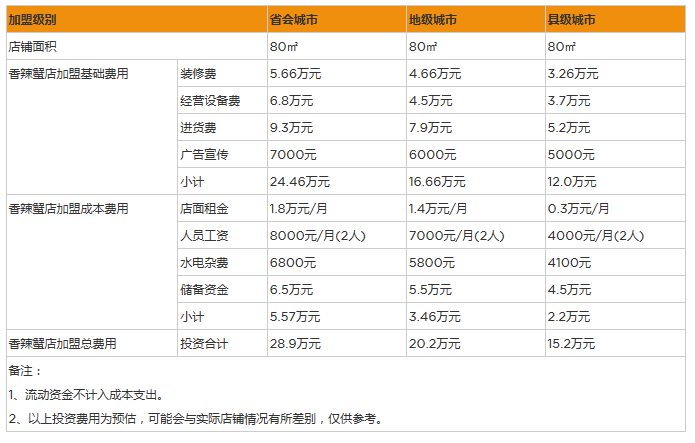 開家香辣蟹店投資一般需要多少錢?80㎡投資15萬,詳情數據分析