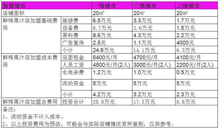 開家鮮榨果汁店投資一般需要多少錢?20㎡投資8萬,詳情數據分析
