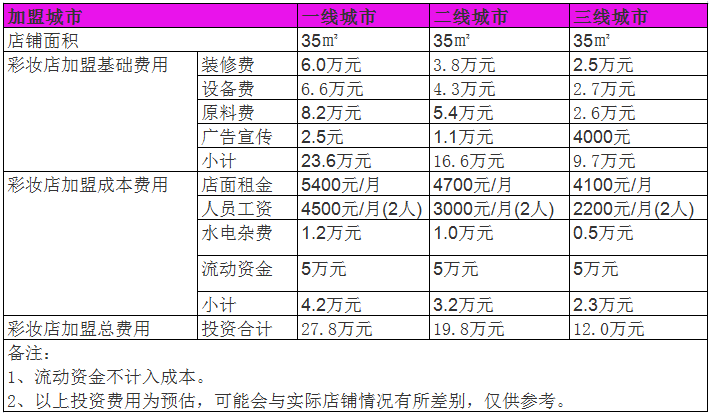 開家彩妝店投資一般需要多少錢?35㎡投資12萬,詳情數據分析